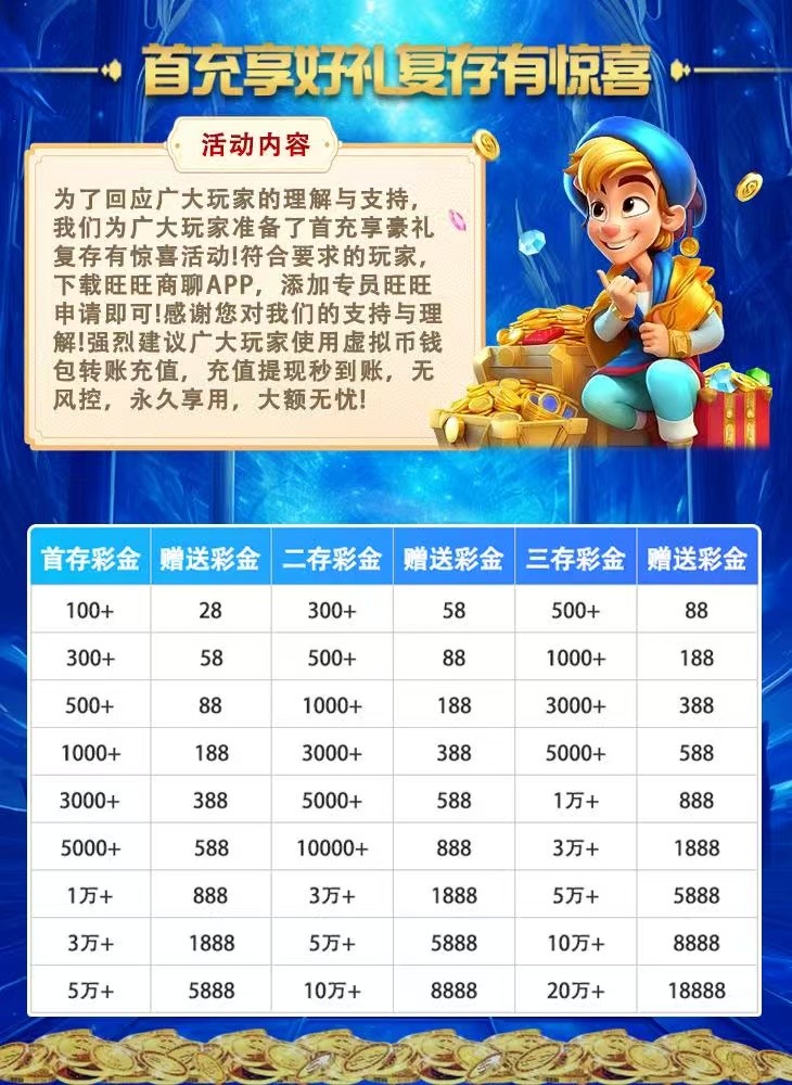 复存彩金:100+12/300+18/500/25/1000+68